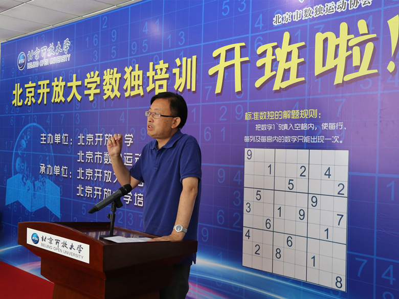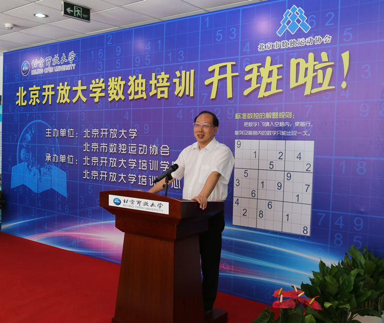 在开班仪式上,黄先开校长致辞。他对首届“北京开放大学数独培训师”培训班的顺利开班表示祝贺,希望数独运动在首都北京能够得到大力推广和普及,同时预祝首届数独培训班取得圆满成功。