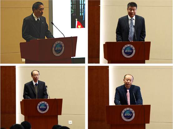 北京开放大学校长黄先开、副校长邵和平、副校长王想年等领导出席会议。黄先开校长、傅国亮主任、线长久副主任、于玉清副主任为北京开放大学家庭教育学院揭牌。北京开放大学领导为家庭教育学院顾问委员会、专家委员会、课程委员会、家庭教育实验区和家庭教育实验校颁发了聘书和牌匾。