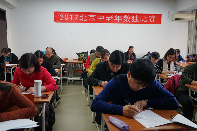 12月22日,2017北京市中老年数独比赛在北京开放大学北校区举行。本次比赛由北京开放大学培训学院联合北京市数独运动协会、法制晚报社共同主办,北京开放大学培训中心承办。比赛的目的是发展全民健脑益智运动,搭建中老年数独交流平台,普及推广数独游戏。有来自全市近百名中老年数独爱好者参加了本次比赛。