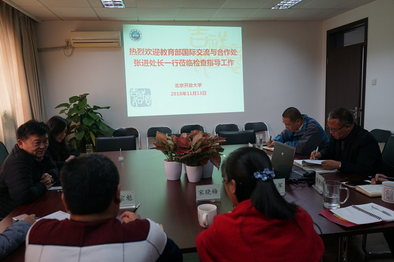 张进在听取了学校相关汇报和介绍后,充分认可北京开放大学作为新型大学在理念、体制、机制和模式上的创新和办学成效。他介绍了国际交流与合作处的主要职能和教育部考试中心的主要业务,双方就合作开展社会考试及海外考试业务进行了广泛交流并达成共识。下一步,双方将进一步增进了解,探讨在其他领域拓展合作。